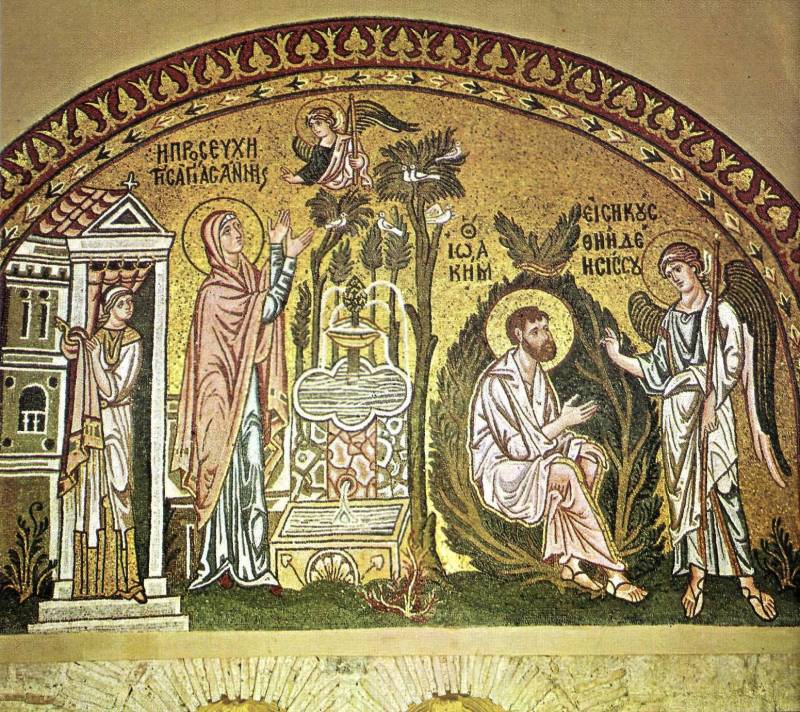 Главная > Иконы > Греция, Дафни (близ Афин), Церковь Успения Богоматери > Благовестие Анне и Иоакиму