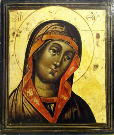 35x30x2,4 В6300/171. И676 Краткое описание: погрудное изображение Богоматери в трехчетвер тном повороте вправо, со слегка склоненной головой