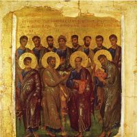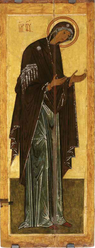 Первая половина XVI в.Средняя Русь Дерево, основа из двух досок с двумя врезными сквозными шпонками. Ковчег, левкас, темпера. 132,2 x 49 И-1203