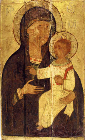 1 По мнению В.И.Антоновой (см. Антонова 1976), эта икона является чудотворным образом “Богоматери Тихвинской” из Мологского Афанасьевского монастыря, принадлежавшим, по преданию, ярославскому князю Федору Ростиславичу Черному. В.В.Горшкова выявила, что икона происходит из Ярославля (публикация в печати).