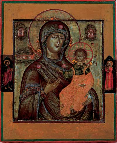 Богоматерь Умиление с полуфигурами святых на полях