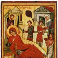Богоматерь Знамение, с символами евангелистов и избранными святыми. Троица, с избранными святыми