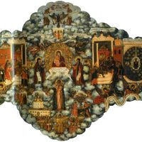 Богоматерь Донская с предстоящими Антонием Великим и Антонием Печерским в окружении сюжетов из Киево-Печерского патерика
