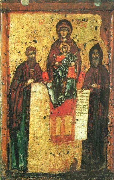 Богоматерь Прежде Рождества и по Рождестве Дева, со святыми на полях
