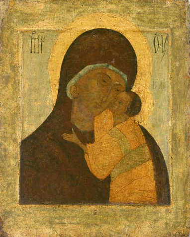 Надписи. Слева от нимба Богоматери: МР ФУ; справа от нимб: IC ХС