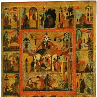 Свт. Николай Мирликийский, с Троицей Ветхозаветной, Явлением Богоматери Сергию Радонежскому и избранными святыми