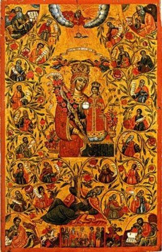 На иконе изображена родословная Иисуса Христа по линии Пресвятой Богородицы. Согласно ветхозаветным пророчествам, Христос должен был родиться в колене Иудином из царского рода Давида, сына Иессеева (Книга Исайи, глава XI, стихи 1-5). Икона «Древо Иессеево» представляет лежащего на земле Иессея, из груди которого разрастается родословное древо с изображениями предков Христа. Греческое название иконы – «Мировлитиса». В настоящее время находится в греческом монастыре Святителя Николая на острове Андрес. В греческой Церкви праздник иконе Божией Матери «Мировлитиса» установлен 15 июля (2 июля по старому стилю).