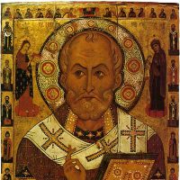 Прор. Анна, свт. Николай, св.князь Владимир, преп.Мария, на полях: мч.Иоанн воин, мч.Димитрий Солунский (XVIII век)