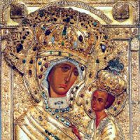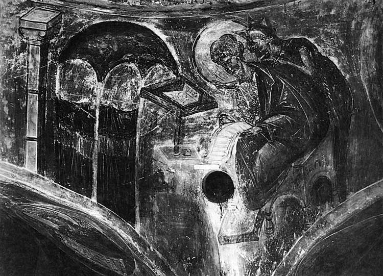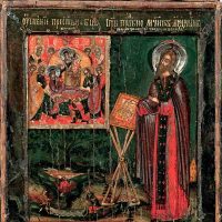 Преподобномученик Адриан Пошехонский в молении перед образом Успения Богоматери