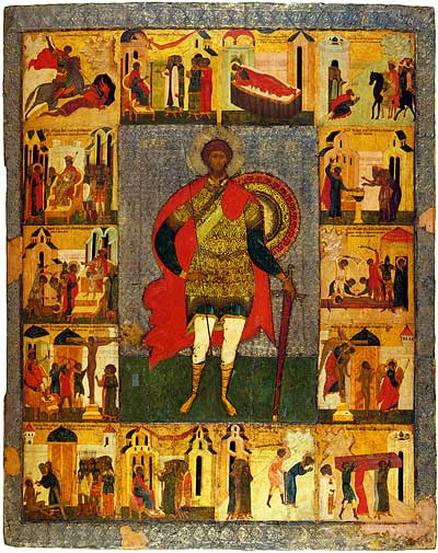 Главная > Иконы > Новгород, Новгородский гос. историко-архитектурный и худо­жест­вен­ный музей-заповедник, Россия > Феодор Стратилат с житием