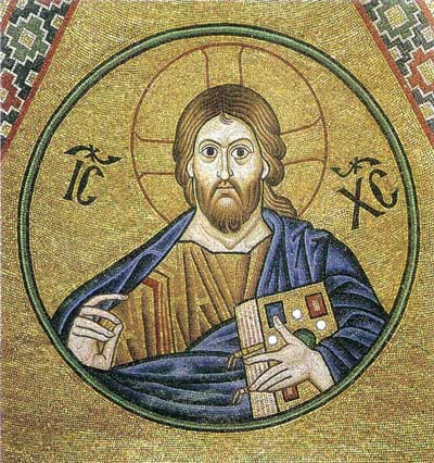 Богоматерь на троне, Христос на троне, двенадцать апостолов в медальонах