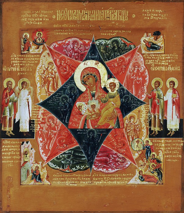 Богоматерь Неопалимая Купина, с дургими образами Богоматери, праздниками и святыми