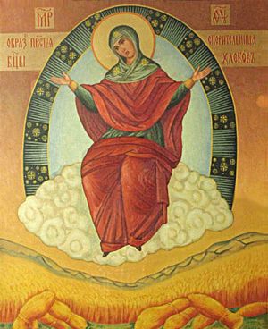 Икона Божией Матери «Спорительница хлебов» – изображение Девы Марии, написанное по благословению преподобного Амвросия Оптинского для созданного им Шамординского женского монастыря. Фотографические снимки этой иконы старец раздавал и рассылал своим духовным чадам, убеждая во всех бедах молиться Пресвятой Богородице. Старец Амвросий сам установил день празднования иконы. На иконе Дева Мария изображена без Младенца. Она стоит или восседает на облаке, благословляя поле с колосьями, частично собранными в снопы. Первое чудо от иконы «Спорительница хлебов» совершилось еще при жизни преподобного Амвросия. 1890 и 1891 годы были голодными и неурожайными по всей России, но в Шамордино, где находился чудотворный образ, хлеб уродился. В 1892 году, уже после смерти старца, в Воронежской губернии случилась засуха. Тогда некий Иван Черепанов, бывший послушником у преподобного Амвросия, попросил сделать копию иконы «Спорительница хлебов» и отослал ее в Пятницкий женский монастырь под Воронежем. Перед иконой отслужили молебен, вскоре после этого в Воронежской губернии прошли дожди, и урожай был спасен. В 1892 году по распоряжению Священного Синода Русской православной церкви «Спорительница хлебов» была увезена из Шамординского монастыря. Ныне судьба иконы неизвестна, однако во многих храмах сохранились ее чтимые списки.