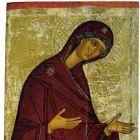 Богоматерь с Младенцем, архангелом Гавриилом и предстоящим в молении прп. Сергием Радонежским