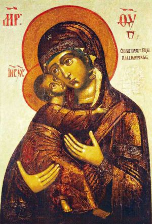 Владимирская икона Божией Матери Ростовская — список Владимирской иконы, находившийся в Успенском соборе города Ростова и почитаемый как чудотворный. Икона была заказана в конце XVII века мастерам Оружейной палаты на замену пришедшему в ветхость древнему образу. После 1686 года возникла благочестивая легенда, приписывавшая создание этой иконы древнерусскому святому преподобному Алипию Печерскому. По этому преданию, один благочестивый киевлянин попросил двух монахов обратиться к преподобному Алипию, чтобы тот написалсемь икон для нового храма. Деньги, предназначенные для преподобного Алипия, монахи забрали себе, а иконописцу ничего не сказали. Не получив икон, заказчик пожаловался настоятелю монастыря, и тот вызвал к себе преподобного Алипия. Святой сказал, что ничего не слышал о заказе, но настоятель ему не поверил и велел принести доски, приготовленные для написания икон. Ко всеобщему удивлению, на досках обнаружились возникшие сами собой изображения. Так был оправдан невинный, а клеветники изобличены. По преданию, одним из этих семи нерукотворных образов и была Владимирская икона, позже оказавшаяся в Ростове. Икона почиталась в Ростове и окрестных уездах, с XVIII века ее крестным ходом переносили в Ярославль. Крестные ходы продолжались и после революции, до 1929 года, когда чудотворная икона была взята в музей.