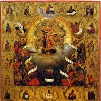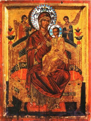 Икона Божией Матери «Всецарица» – чудотворная икона со Святой горы Афон, широко почитаемая в России. На иконе изображена Пречистая Дева в багряном одеянии, восседающая на царском троне. На руках Ее – Богомладенец со свитком в левой руке, благословляющий правой. Правой рукой Богородица указывает на Своего Сына как на Спасителя всех людей. На заднем плане – два ангела, осеняющие Пречистую Деву крылами. По преданию, первое чудо от этой иконы произошло с юношей, который занимался магией и решил испробовать свою силу на святых иконах. Он прибыл в монастырь, подошел к иконе и стал шептать заклинание. Внезапно от лика Богородицы засиял ослепительный свет, и юношу отбросило прочь. После этого случая он раскаялся и оставил занятия колдовством. Впоследствии икона «Всецарица» прославилась также чудесами исцеления больных раком. Чтимые списки иконы: Москва, Новоспасский монастырь; Киев, Киево-Печерская Лавра, храм Всех преподобных Печерских