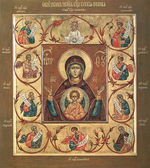 Курская Коренная икона Божией Матери «Знамение» – древняя чтимая икона, в настоящее время – одна из святынь русского зарубежья. Является списком чудотворнойиконы «Знамение». По преданию, она была найдена охотниками в 1295 году в лесной глуши на берегу реки Тускарь, при корнях дерева, отчего и получила название Коренная. На месте, где лежала икона, забил источник. Икону доставили в Рыльск, но вскоре она чудесным образом перенеслась на место своего обретения, где для нее построили часовню. В 1383 году часовню сожгли татары. Саму икону разрубили на две части и разбросали в разные стороны. Впоследствии обломки иконы нашел один благочестивый старец, соединил их, и они тут же срослись. В 1597 году по приказу царя Федора Иоанновича икону привезли ее в Москву для поклонения, а на месте ее обретения был основан монастырь — Курская Коренная пустынь. Вскоре икону с почестями доставили обратно в курский край и построили для нее Знаменский монастырь в Курске. В Смутное время Лжедмитрий снова забрал Коренную икону в Москву, а в Курск ее вернули только в 1615 году. В 1919 году при отступлении Белой армии икона была увезена из Курска и переправлена в Сербию, оттуда в Германию и, наконец, в Соединенные Штаты Америки. С 1957 года она находится в Синодальном Знаменском соборе в Нью-Йорке.