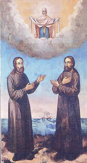 Икона. ИОАНН И ЛОГГИН ЯРЕНГСКИЕ. Вторая половина ХIХ в. Иконописная мастерская Соловецкого монастыря.