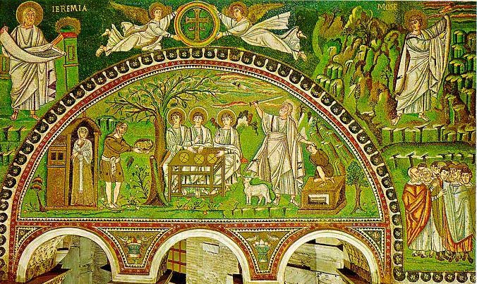 Главная > Иконы > Италия, Равенна, Церковь Сан Витале > История Авраама, пророк Иеремия и Моисей на горе Синай
