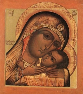 Существуют два различных предания о появлении Корсунской иконы Пресвятой Богородицы на Руси. По одному – икону привёз в Киев из Корсуни святой равноапостольный князь Владимир. Другое предание гласит, что в Россию она была принесена в конце XII века полоцкой княжной Предиславой, в иночестве Евфросиниею, которая получила её в подарок от греческого императора. Образ Корсунской иконы Божией Матери схож с Касперовской иконой. В современной иконописи эти два образа практически неразличимы. Возможно, Касперовская икона Пресвятой Богородицы – это поздний список с Корсунской иконы. Существуют множество списков Корсунской иконы в зеркальном изображении. Примечательно, что распространённый ныне Корсунский образ Божией Матери относится к типу «Умиление», в то время как изначальная икона относится к типу «Одигитрия» и считается одной из икон, написанной евангелистом Лукой. Именно такой образ находится в Успенском соборе Кремля. Другой древней Корсунской иконой является Торопецкая икона Божией Матери – по преданию, именно тот образ, который был привезён в Россию княжной Предиславой. Ныне же распространённый Корсунский образ, типа «Умиление», появился в России предположительно в XVIII веке. День празднования: 22 октября (9 октября по старому стилю).