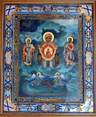 Написана икона в память о погибших моряках с подводной лодки «Курск», а также всех воинов, безвестно канувших в пучине моря. Полгода воплощалась в жизнь идея Николая Балмасова, которая ему приснилась через некоторое время после трагических событий августа 2000 года. 10 августа 2003 года, в канун годовщины печального события, икона была передана в Свято-Никольский храм посёлка Видяево. На образе на фоне морских волн изображено «Знамение Пресвятой Богородицы». Рядом с Божией Матерью стоят покровитель моряков Святитель Николай Чудотворец и святой апостол Андрей Первозванный. Внизу два ангела опускают в воду траурный венок и 118 зажжённых свечей – по количеству погибших подводников. На серебряном окладе иконы изображены Андреевские флаги и траурные гирлянды на фоне морских полос.