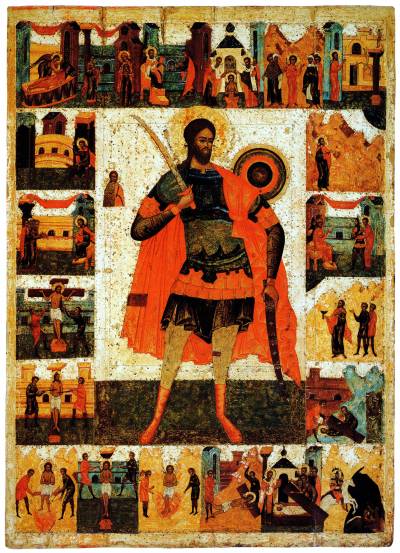 Никита Воин, предстоящий Богоматери с Младенцем, с житием в 20 клеймах