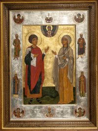 Святые князья Александр Невский и Феодор, с видом Александро-Невского монастыря