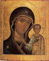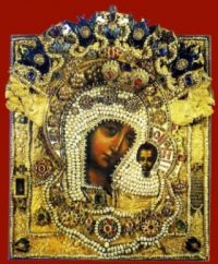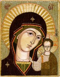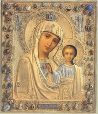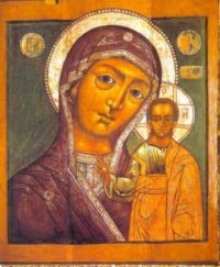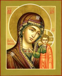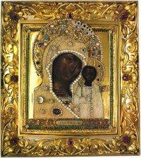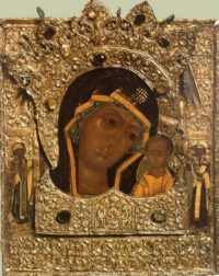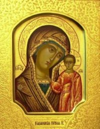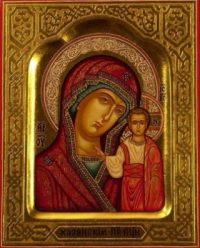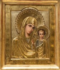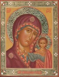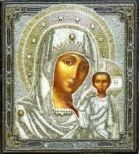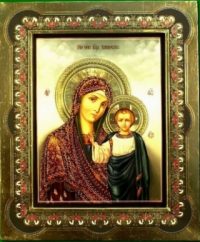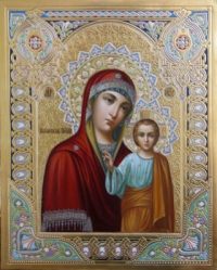 Казанская Божия Матерь, Спаситель. Бархатный складень с иконами венчальная пара