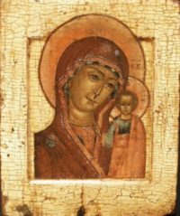 Казанская Божия Матерь, Спаситель. Деревянный складень с иконами