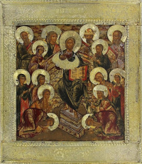 Спас на престоле с припадающими Сергием Радонежским и Макарием Желтоводским и Унженским