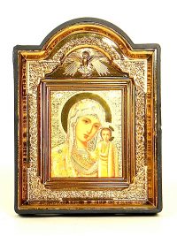 Икона БМ Казанская в пласт.киоте на подставке 11х8