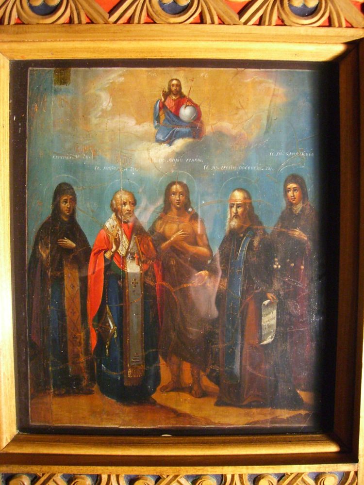 Прор. Анна, свт. Николай, св.князь Владимир, преп.Мария, на полях: мч.Иоанн воин, мч.Димитрий Солунский (XVIII век)