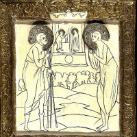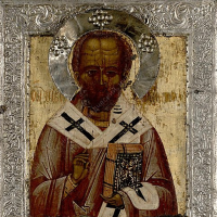 Дерево; левкас; темпера; серебро, тиснение; гравировка; золочение. 32x29x3, общий вес иконы – 1055,02 г. Соловецкий музей-заповедник. КП-1754
