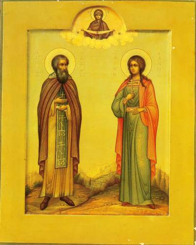 Главная > Иконы > Государственный научно-исследовательский институт реставрации, Москва, Россия > Преподобный Михаил Клопский и святая мученица Александра