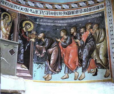Главная > Иконы > Галата, Кипр, Церковь Пресвятой Богородицы (Панагии тис Подиту) > Причащение апостолов вином