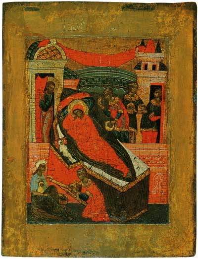 Богоматерь Экономисса, с житием прп. Афанасия Афонского и видом Великой лавры на Афоне