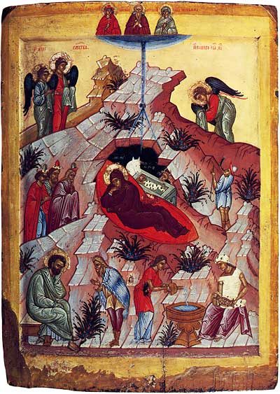 Главная > Иконы > Государственная Третьяковская галерея, Москва, Россия > Рождество Христово с избранными святыми