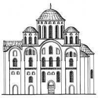 Собор Архангела Михаила в Михайловском Златоверхом монастыре, Киев. Начало XII века. Реконструкция. Вид с южной стороны