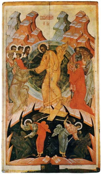 Воскресение — Сошествие во ад, с клеймами земной жизни Христа, праздниками и Древом Иессеевым
