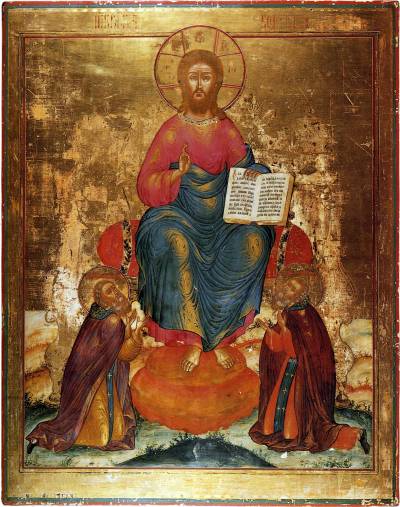 Спас на престоле с припадающими Сергием Радонежским и Макарием Желтоводским и Унженским