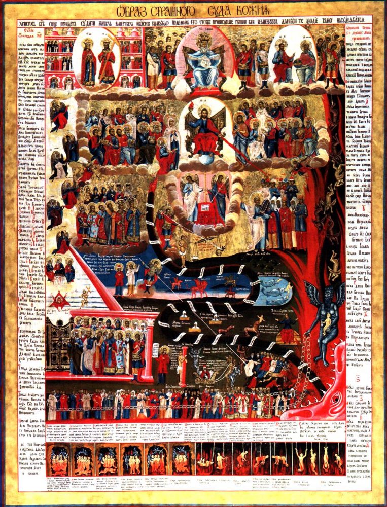 В иконографическом отношении икона типична для XVIII в., особенно для его середины-второй половины. Основные звенья композиции пришли из искусства XVI в. Сконца XVII в. становятся популярными такие мотивы иконографии данного памятника, как композиция „Предста Царица“ в изображении Горнего Иерусалима, с фигурами Христа и Богоматери в рост, причем Христос держит вруках большой крест; как изображение грешников, связанных одной цепью, которую держит сатана; как изображение пустынной земли с водной гладью вдали. Интересно изображение богача с серебром, в колеснице, запряженной двумя бесами, которыми правит третий бес. Данный вариант Страшного суда сложился под сильным влиянием печатной графики. Из гравюр пришли и многочисленныетексты, и их компоновка, и даже разбивка как бы на отдельные страницы текстов, поясняющих изображения вечных мук и грехи идущих в ад грешнико вразличных сословий. Очень интересны такие детали фольклорного характера, как изображения зверей, рыб и птиц. Икона ярко представляет искусство городских посадов, любимое народом. Исполнивший икону мастер в своей палитре опирался на опыт русской иконописи середины XVIII в. Особенности композиции, а также личное письмо, имеющее гладкую поверхность, с характерными бликами на глазах, передающими их почти „натуральный“ блеск, позволяют сузить датировку иконы до 1770-1780 годов. Икона представляет художественную, историко-культурную и музейную ценность