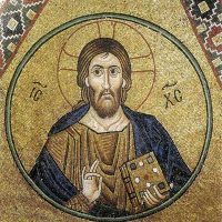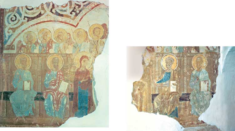 Богоматерь на троне, Христос на троне, двенадцать апостолов в медальонах