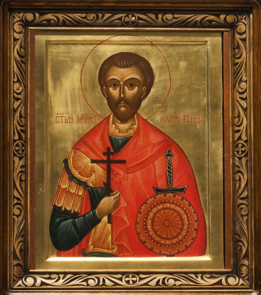 Святой мученик Иоанн Воин служил в императорском войске Юлиана Отступника (361-363). Наряду с другими воинами он был послан преследовать и убивать христиан. Оставаясь по наружному виду как бы гонителем, святой Иоанн на деле оказывал гонимым христианам большую помощь: тех, которые были схвачены, освобождал, других предупреждал о грозящей им опасности, содействовал их побегу. Святой Иоанн оказывал милосердие не только христианам, но и всем бедствующим и требующим помощи: посещал больных, утешал скорбящих. Когда Юлиан Отступник узнал о действиях святого, то заключил его в темницу. В 363 году гонитель был убит на войне с персами. Святой Иоанн вышел на свободу и посвятил свою жизнь служению ближним, жил в святости и чистоте. Скончался он в глубокой старости. Обретенные его мощи были положены в церкви апостола Иоанна Богослова в Константинополе. Господь даровал святым мощам Иоанна Воина благодатную силу исцеления. По молитвам святого Иоанна получают утешение обиженные и скорбящие.