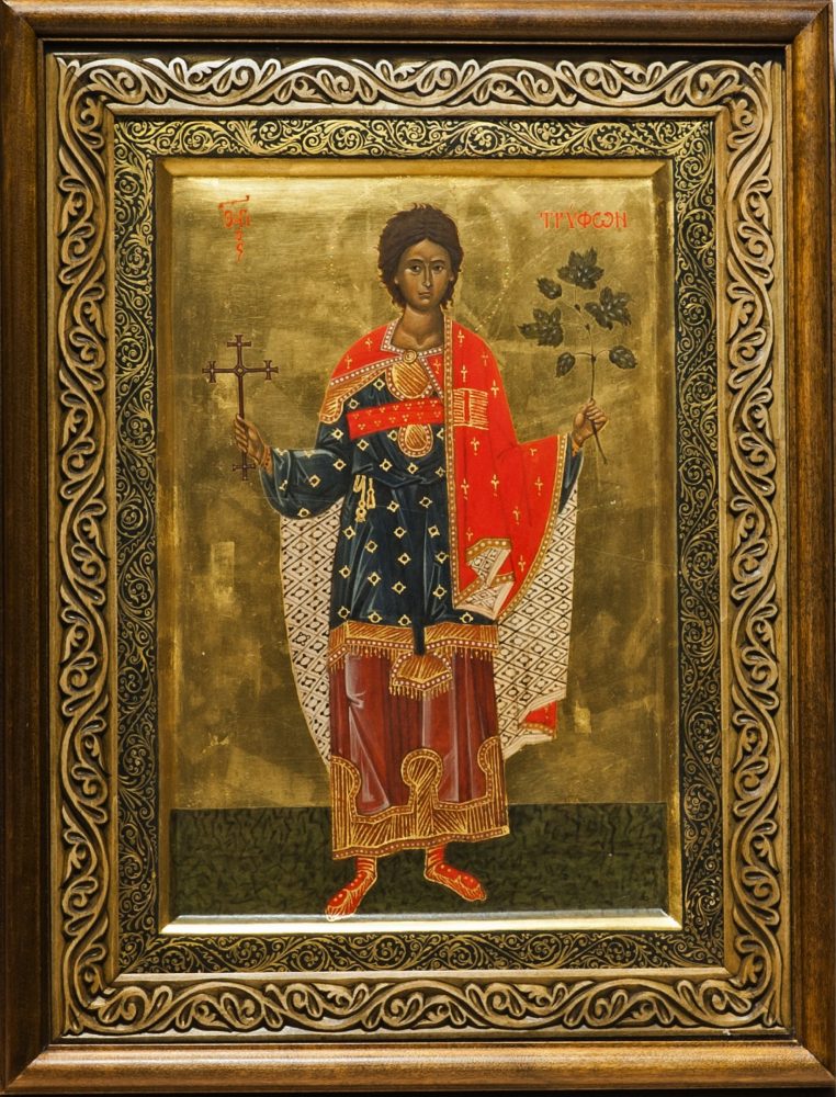 Святой мученик Трифон родился в Малой Азии. С юных лет Господь даровал ему силу изгнания бесов и исцеления различных болезней. Однажды жители его родного села были спасены им от голода: святой Трифон силой своей молитвы заставил уйти вредных насекомых, истреблявших хлебные злаки и опустошавших поля. Особенно прославился святой Трифон изгнанием беса из дочери римского императора Гордиана (238 – 244). При императоре Декии святой был схвачен и подвержен жестоким истязаниям, а затем осужден на усечение мечом. Перед казнью святой мученик молился, благодаря Бога, подкрепившего его в страданиях, и испросил у Господа особую благодать тем, кто будет призывать его имя на помощь. Прежде, чем воины занесли меч над головой святого мученика, он предал душу свою в руки Божии. Это событие произошло в городе Никее в 250 году. Святое тело мученика христиане обвили чистыми пеленами и хотели предать погребению в Никее, но святой Трифон, в видении, повелел перенести его тело на свою родину, в селение Кампсаду. Это и было исполнено.