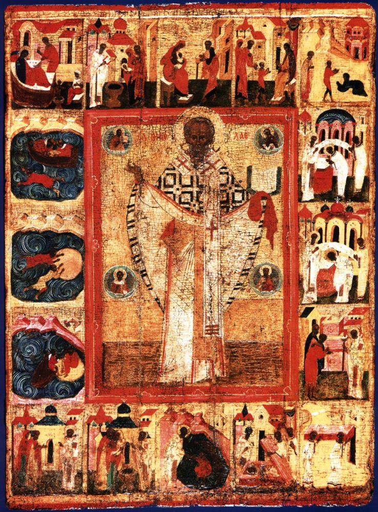 В среднике святой представлен в иконографии Николы Зарайского, с двумя обычными медальонами с изображениями Спаса и Богоматери вверху. Редкостью являются два медальона над поземом, слева – с полуфигурой святителя, справа – с полуфигурой мученика. Два последних изображения, очевидно, появились по воле заказчика.Редким является также клеймо 12-е, с изображением родителей, молящих Николу о спасении их утонувшего ребенка. Клейма с циклом повествования о спасении трех купцов, выброшенных в море разбойниками, обычны для новгородских и псковских икон, но нечасто встречаются на иконах ростовской художественной традиции. Высокохудожественное произведение с редкими иконографическими деталями, иллюстрирующее один из этапов сложения северных художественных традиций на основе ростовской художественной культуры. Представляет значительную научную, историческую и музейную ценность