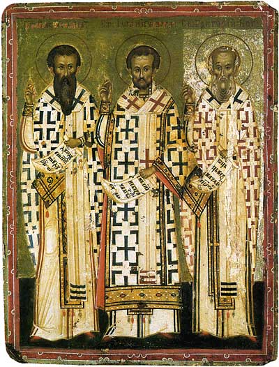 Григорий Нисский, Василий Великий, Григорий Богослов. Иов с женой и друзьями