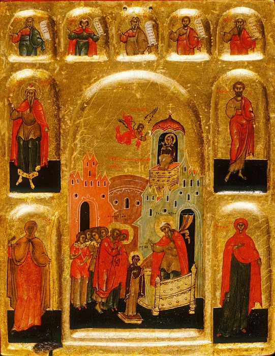 Преподобномученик Адриан Пошехонский в молении перед образом Успения Богоматери