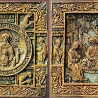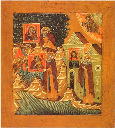 Богоматерь Знамение, с символами евангелистов и избранными святыми. Троица, с избранными святыми