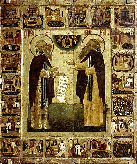 Икона. ЗОСИМА И САВВАТИЙ В ЖИТИИ. XVI в. Север. Дерево, левкас, темпера. 91,2х77,0х2,5. Государственный Русский музей. ДРЖ-2078