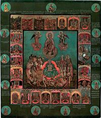 Богоматерь Живоносный источник, с чудесами и апостолами